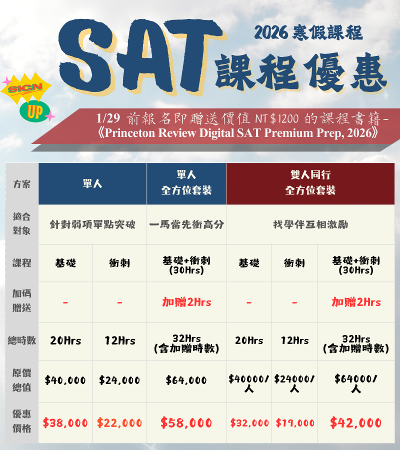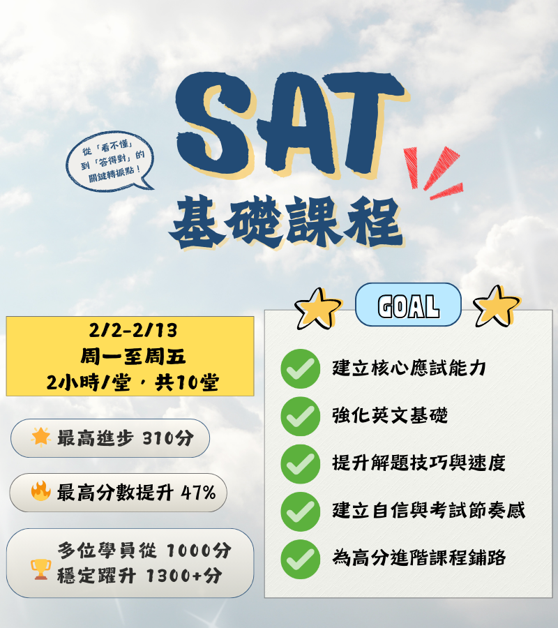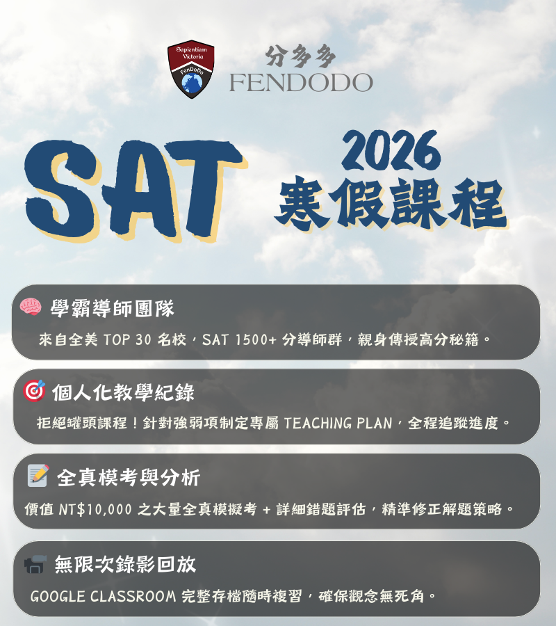 想在寒假一次打穩基礎、拉開分數差距嗎? 分多多 SAT 寒假系列課程,從「看不懂」到「會寫、寫對、寫快」,完整規劃不走冤枉路!